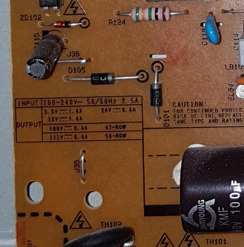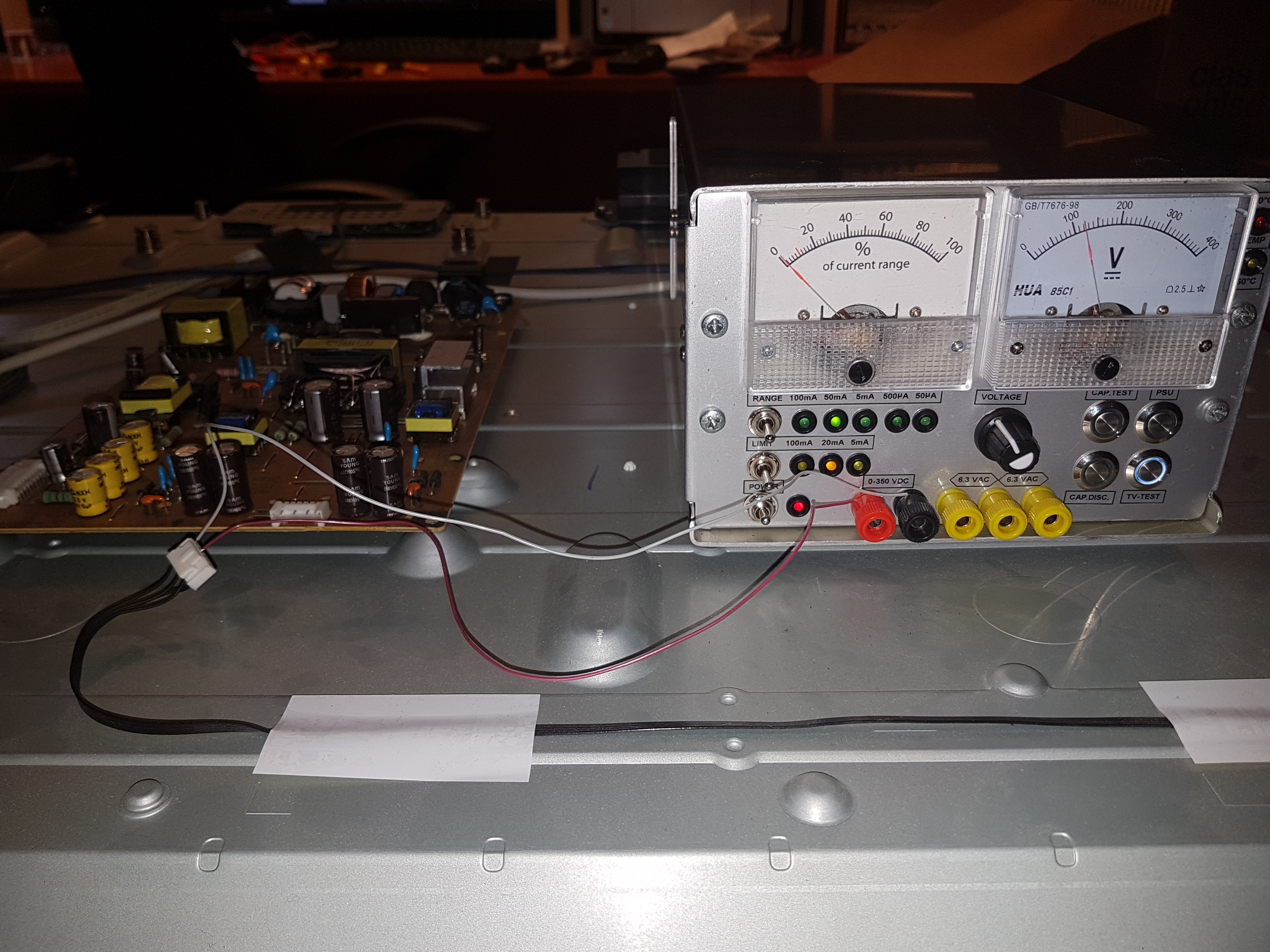 Internally, the LED strips are connected in two different series loops, and markings on the TV PSU indicate that these loops shall be driven by 100V and 111V respectively.
