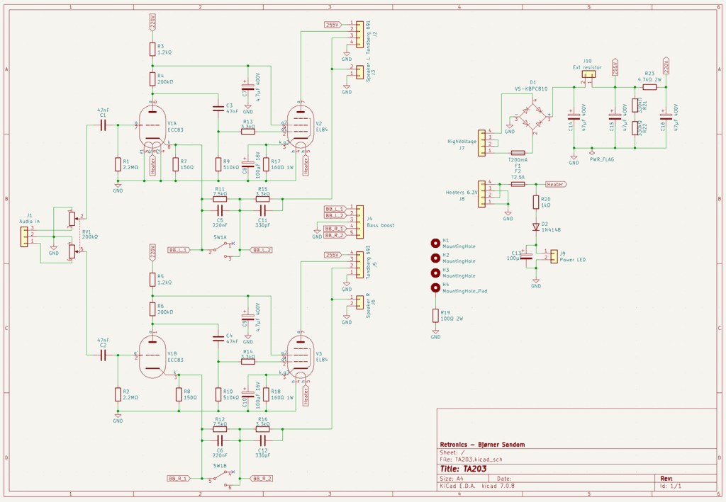 Production files (Gerber) and KiCad design files are published to Github: https://github.com/donpivo/TubeAmp_TA203