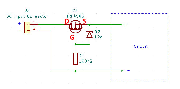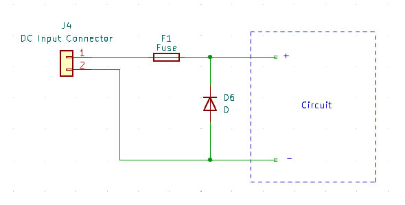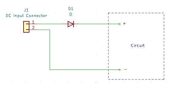 In it’s simplest form, polarity protection may be implemented using a single diode: