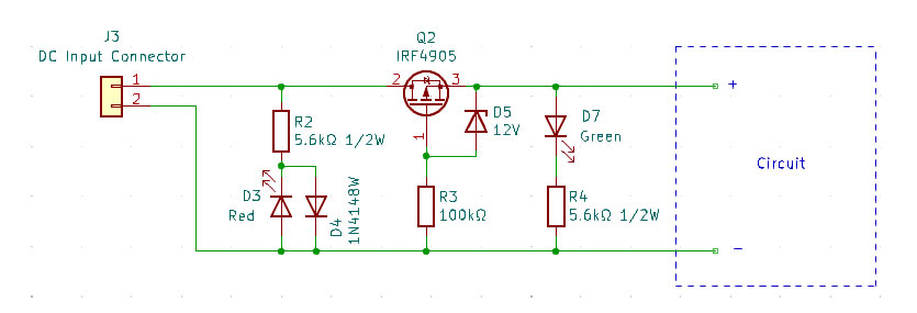 For most circuits, I like to add a green LED that shows when power is on, and together with the polarity protection I find it a good idea to add a red LED which lights up if polarity is reversed: