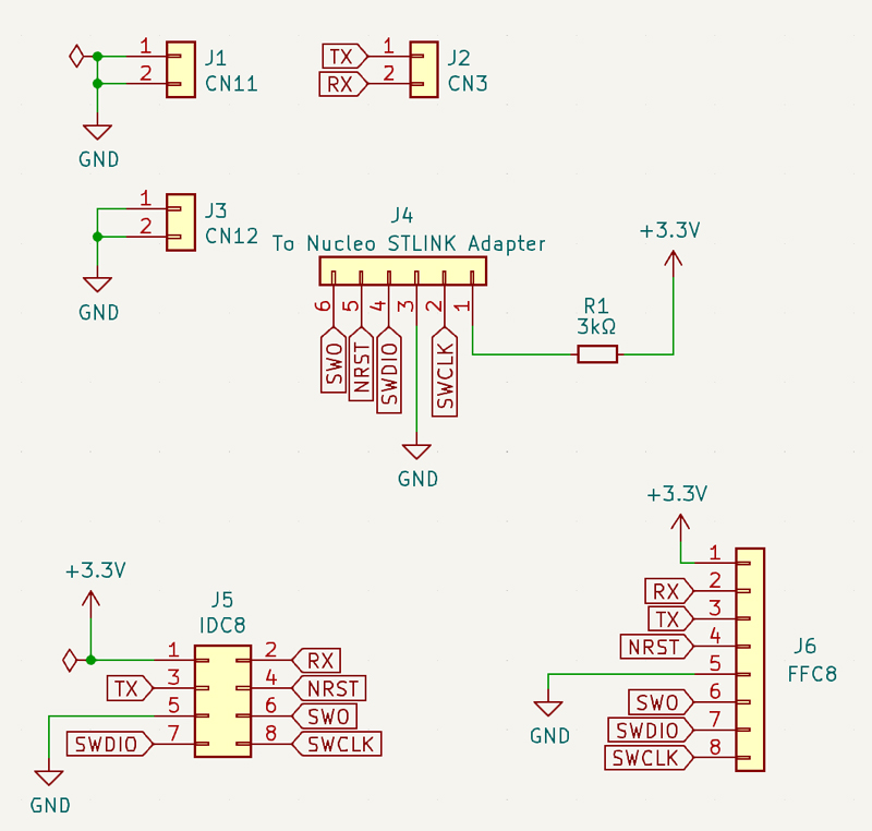 Plug the ST-LINK into the connector board, and it’s ready for use. For most custom STM32 boards, I use IDC connector, while the FFC connector is added as an option for smaller boards.