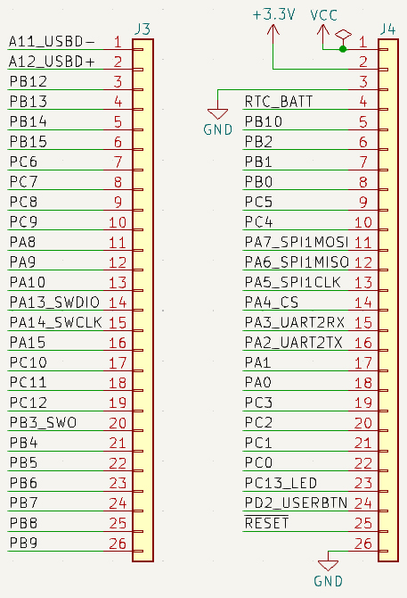 Similarly, pins PA13 and PA14 are used for ST-LINK interface. If you are going to upload or debug firmware via ST-LINK, don’t use these pins for other purposes.