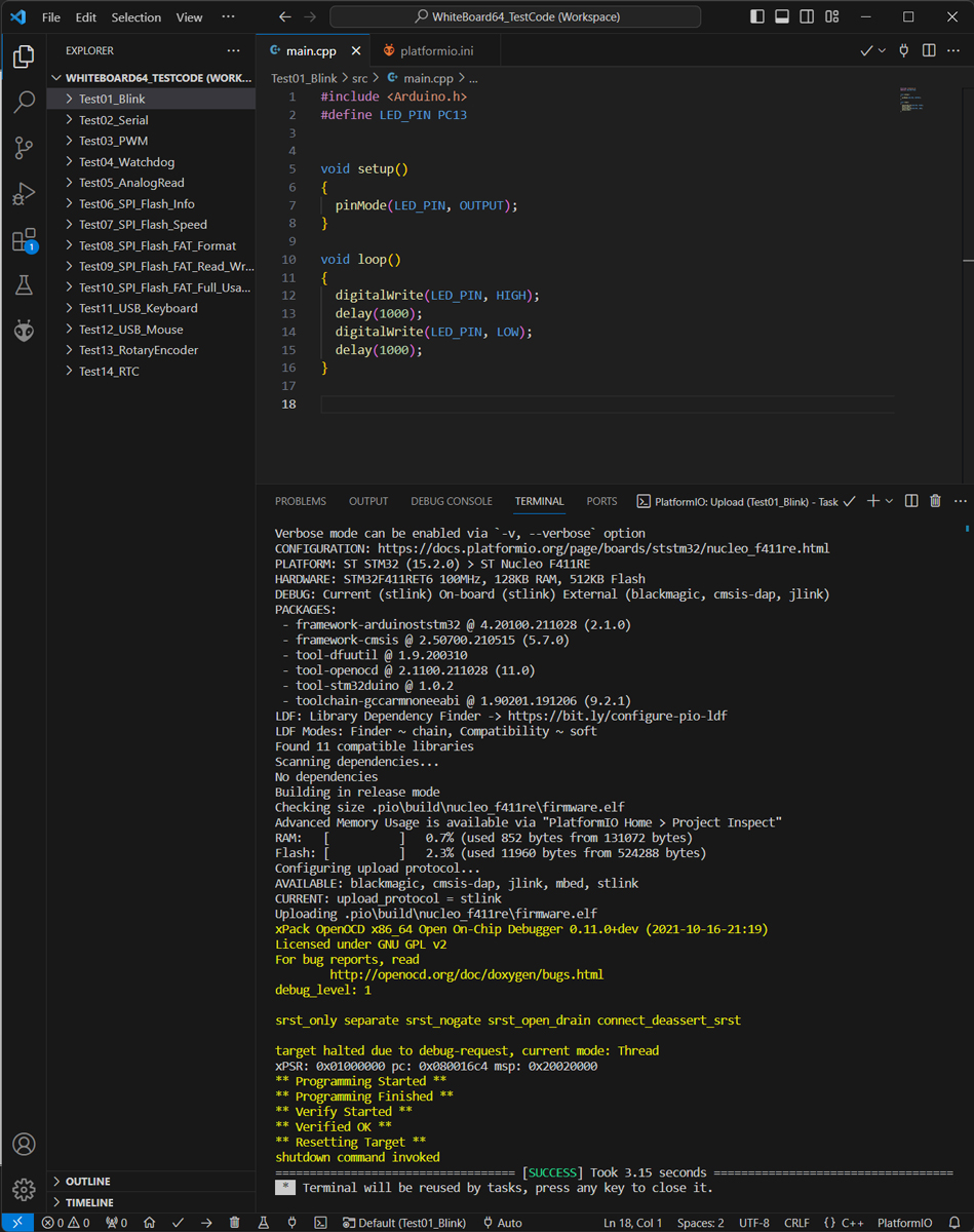 If you are making more advanced projects, you have probably already moved on to a better development environment. Personally, I prefer using VSCode with PlatformIO. For Arduino IDE users, PlatformIO may be a little confusing at first, but once you get used to it, you don’t want go back to Arduino IDE, except maybe for small test sketches. You’ll find lots of tutorials on YouTube on how to get started with PlatformIO. Professional STM32 programmers will probably use STM32CubeIDE, but that IDE is only for ST microcontrollers, while PlatformIO supports most modern microcontrollers.