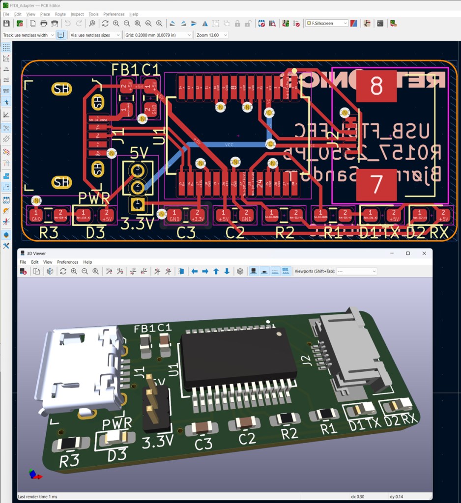 Sometimes, however, when making small PCBs containing microcontrollers like the ATMEGA328P, a 6-pin 1/10″ pin header would be too large to fit on the board. Therefore, I designed an alternative FTDI adapter with a much smaller FFC connector with 0.5mm pitch.