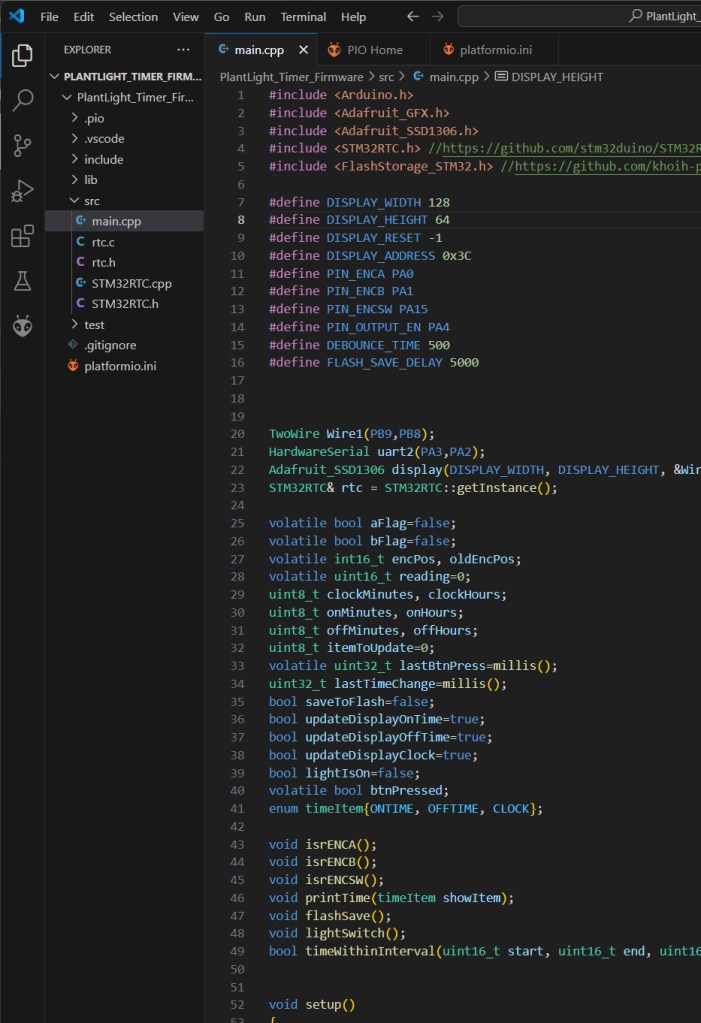 The code is written in C/C++, using PlatformIO with Arduino framework, and the STM32 is programmed via a custom ST-LINK interface. Other ST-LINK adapters will also work, provided you get the pinout right.